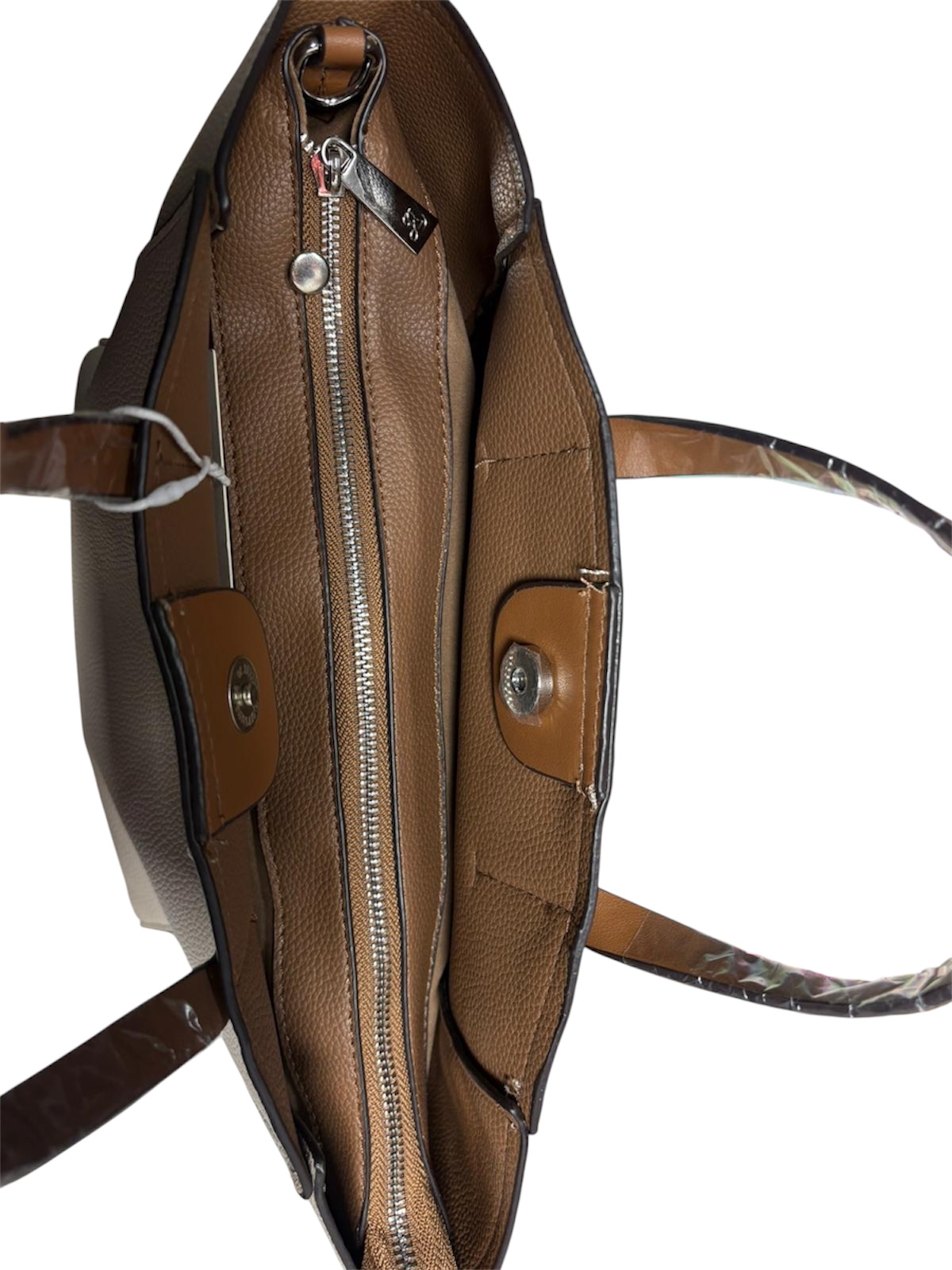 Tiene una base amplia y cómoda (ideal para llevar portátil, agenda, cartera y lo esencial del día), altura media-alta y buena capacidad sin perder la silueta estructurada y chic. Cierre superior con cremallera plateada discreta y charm metálico sutil. El interior en tono claro incluye bolsillo central con zipper y acabados de alta calidad visibles (remaches, costuras impecables, forro resistente).