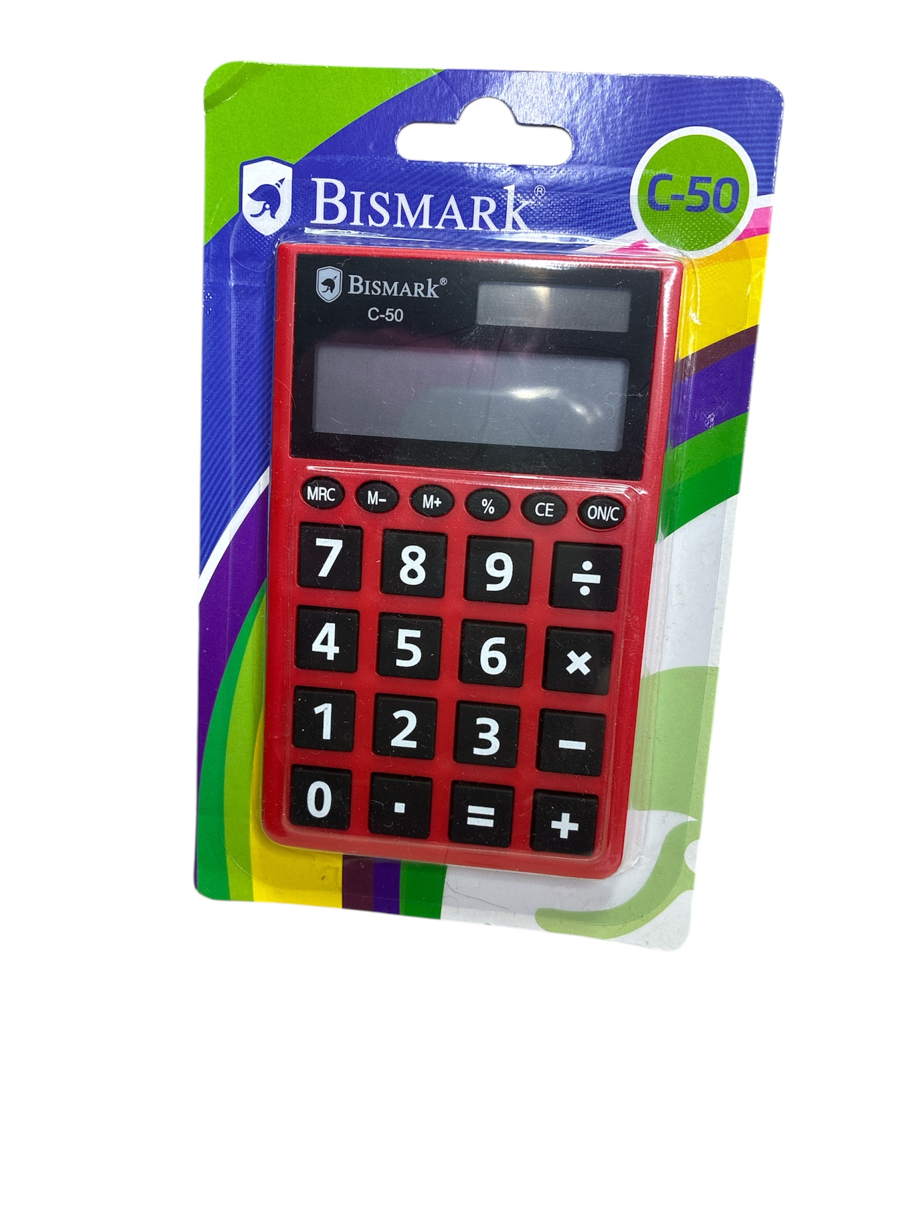 La calculadora sencilla, resistente y alegre que nunca falla: la Bismarck C-50 en rojo intenso con teclas negras grandes y embalaje multicolor arcoíris. Perfecta para niños, estudiantes de primaria y secundaria, uso doméstico, tienda o como calculadora de respaldo económica.