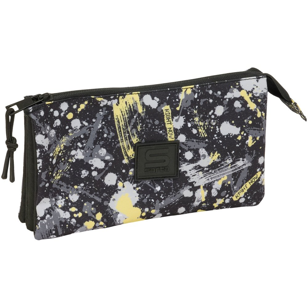 ¡Activa el modo «Right Now» con este estuche Safta splash lleno de energía explosiva! De la colección urbana de Safta, este neceser es pura adrenalina: fondo negro/gris con un estampado all-over de salpicaduras y pinceladas en amarillo intenso, blanco y gris que simulan pintura fresca lanzada al lienzo, creando un efecto dinámico y artístico. Las frases «RIGHT NOW» aparecen repetidas en amarillo chillón, motivando a actuar YA, mientras el parche central negro premium con logo «S» en relieve añade ese toque streetwear auténtico y 3D.