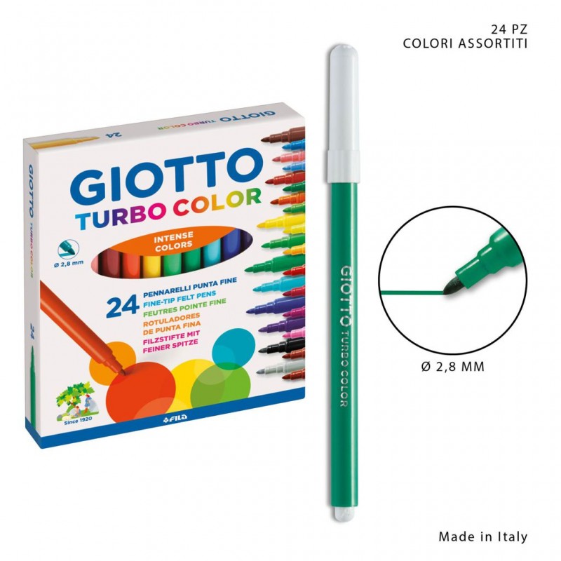 Los rotuladores Giotto Turbo Color de 24 colores ofrecen una experiencia de dibujo vibrante y precisa, con tonos brillantes, punta resistente y tinta segura y lavable, ideales para niños, estudiantes y artistas que buscan calidad, durabilidad y creatividad sin límites.
