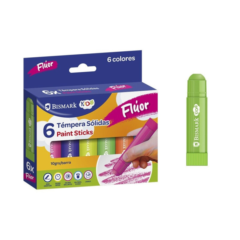 “Descubre las témperas sólidas Bismark Kids Fluor: colores intensos y vibrantes que se deslizan suavemente, secan rápido y permiten a los niños crear sin ensuciar. ¡Ideal para proyectos creativos llenos de luz, energía y diversión!”