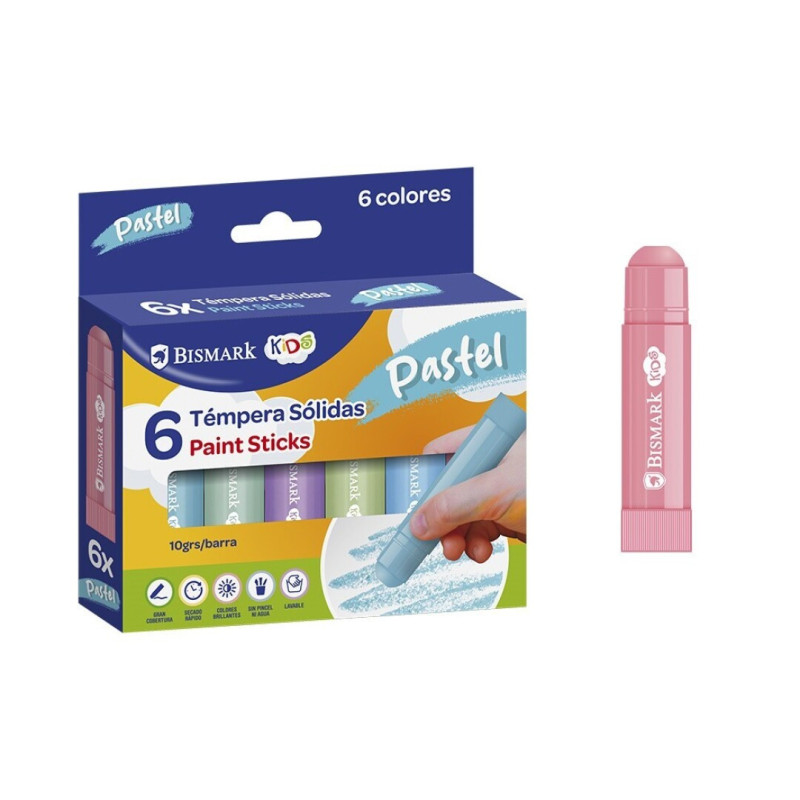 “Las Témperas Sólidas Pastel Bismark Kids convierten cualquier dibujo en una obra llena de color y suavidad: se deslizan sin esfuerzo, no manchan y secan rápido, ofreciendo a los niños una forma práctica, divertida y limpia de expresar su creatividad.”