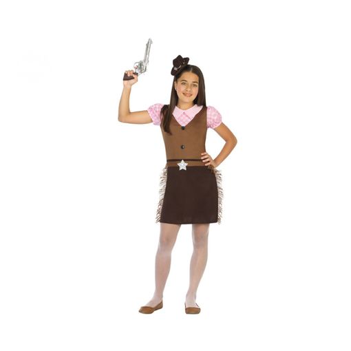 ¡Tu pequeña se convertirá en la reina del Lejano Oeste con este disfraz adorable y lleno de acción! Inspirado en las clásicas vaqueras del cine, este conjunto combina estilo rústico con toques divertidos y coloridos para que brille en cualquier fiesta.