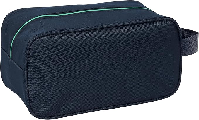 El zapatillero oficial Real Madrid es el accesorio imprescindible para cualquier fan o deportista madridista que quiere proteger y transportar sus zapatillas o botas de fútbol con estilo y total comodidad. Fabricado en poliéster resistente de alta calidad, este modelo rectangular destaca por su elegante color azul marino combinado con bordes en verde flúor vibrante, que le dan un toque moderno y dinámico inspirado en los colores icónicos del club.